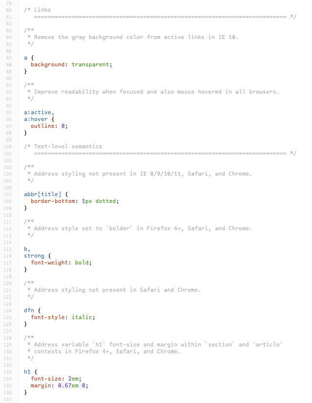 ซึ่ง Browser เอง (เช่น IE, Firefox, Chrome) ก็ดันพัฒนาตามมาตรฐานไม่ทัน ทำให้แต่ละ Browser ตั้งค่าเริ่มต้นไปตามใจ เช่น ระยะระหว่างย่อหน้า, ระยะของบุลเล็ตต่างๆ, ตัวหนา, ตัวยกกำลัง ฯลฯ ทำให้การทำเว็บ ถ้าเราต้องการให้รองรับทุก Browser เหมือนๆ กัน เราควร “ตั้งค่าให้ทุก Browser แสดงผลเหมือนกันก่อน” ซึ่งฝรั่งเรียกว่า Reset (เริ่มต้นใหม่) หรือ Normalize (ทำให้เป็นปกติ)